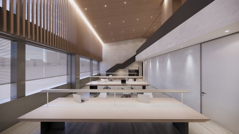 开放办公区采取了简洁的设计风格,深浅色调的搭配,让整个空间显得明亮整齐,给人一种舒适感。
