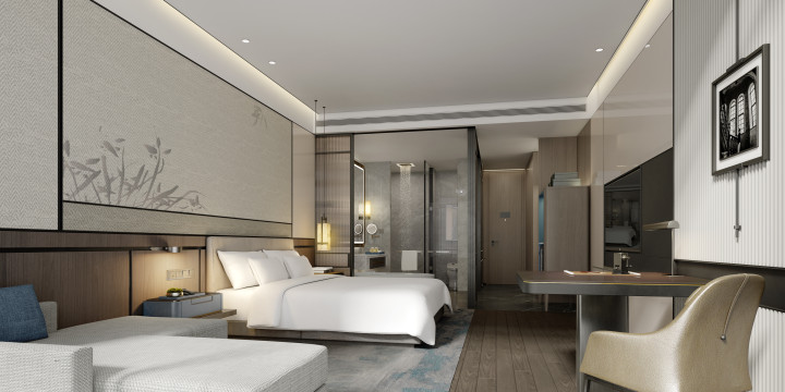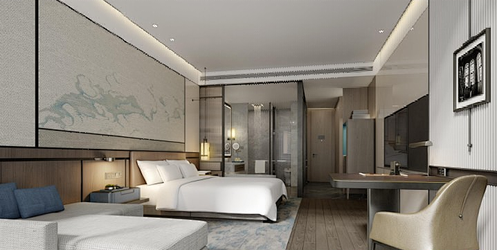 今日,就带您走近绍兴卧龙万豪酒店客房样板间